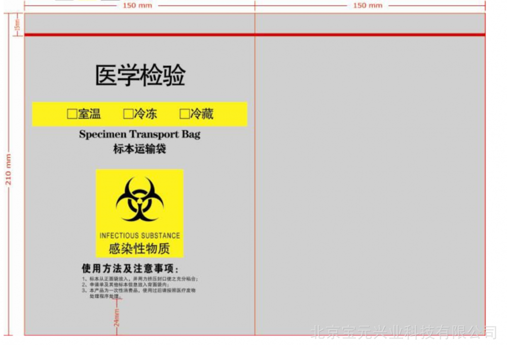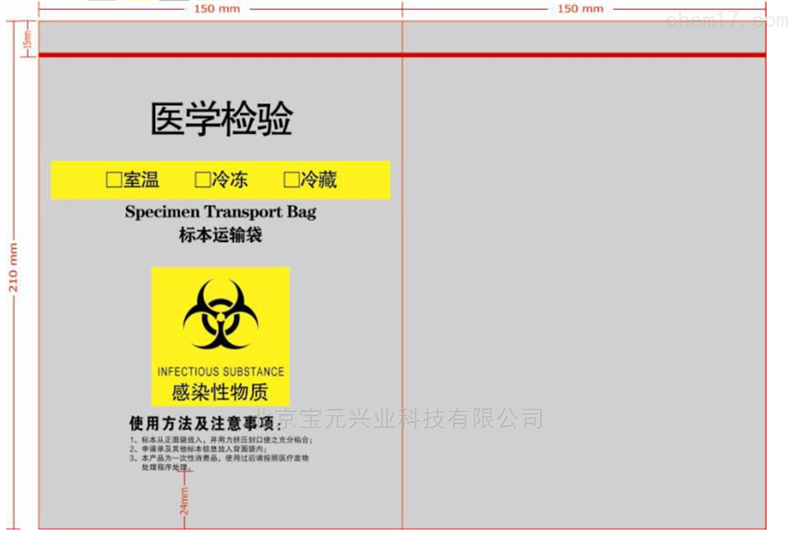 规格:15*21cm 病理标本袋/感染物质标本运输袋BY-YS15